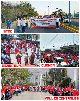 En la Cuenca del Papaloapan, trabajadores y campesinos pobres se concentraron en las instalaciones del CECYTE, iniciando un bloqueo carretero para luego salir en marcha de pies cansados hacia la cabecera municipal de Valle Nacional. Las banderas del Sol Rojo también inundaron las calles.